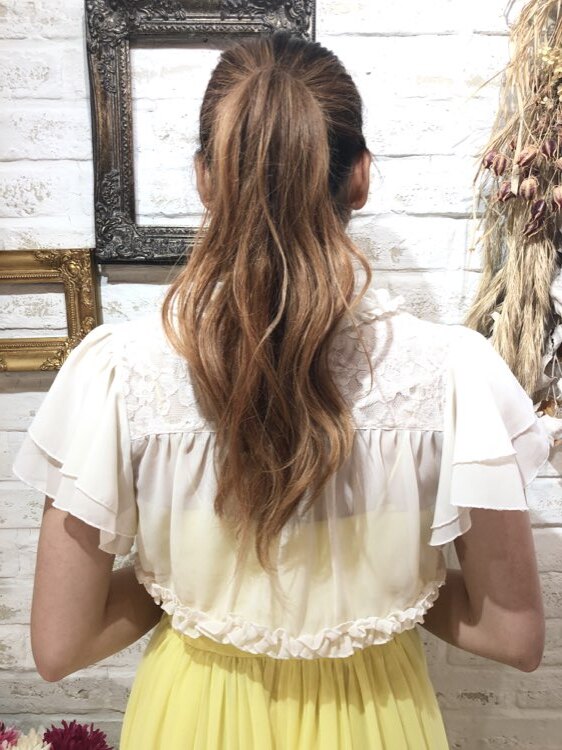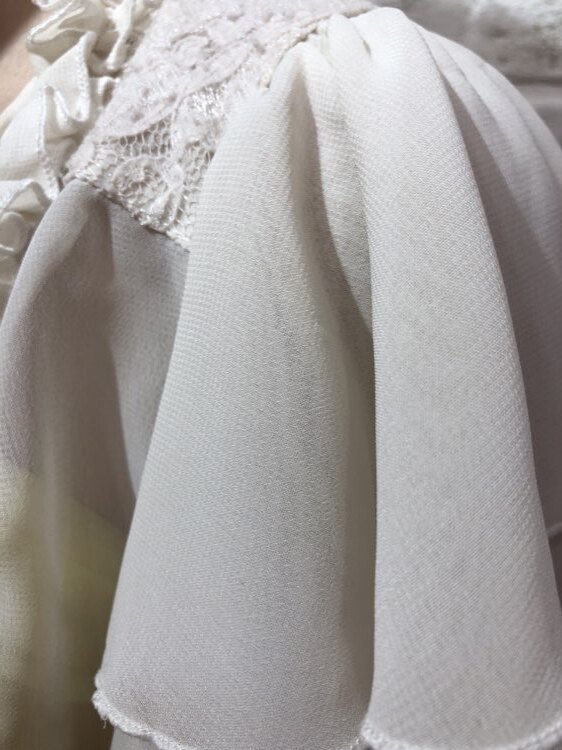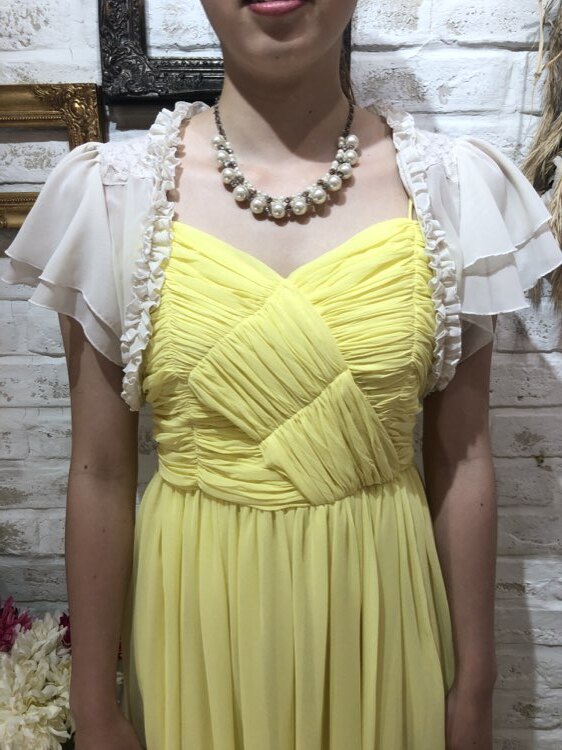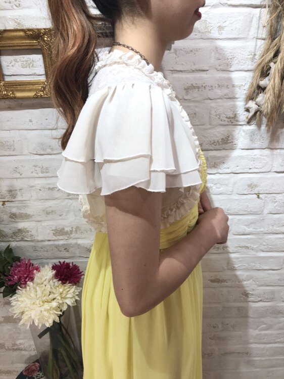レースとシフォンのアイボリーボレロ。レース使いが上品かわいい1着です。お袖はフレアになっており、二の腕をほっそりと見せてくれます。アイボリーカラーはどんな色のドレスにもあわせやすく使いまわしがきく商品となります。結婚式参列、各種パーティ、お呼ばれ、お食事会など様々なシーンにプラスして頂ける商品です。サイズは目安になりますので必ず表記している実寸サイズをご確認ください。