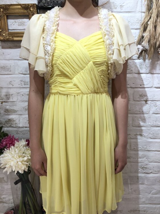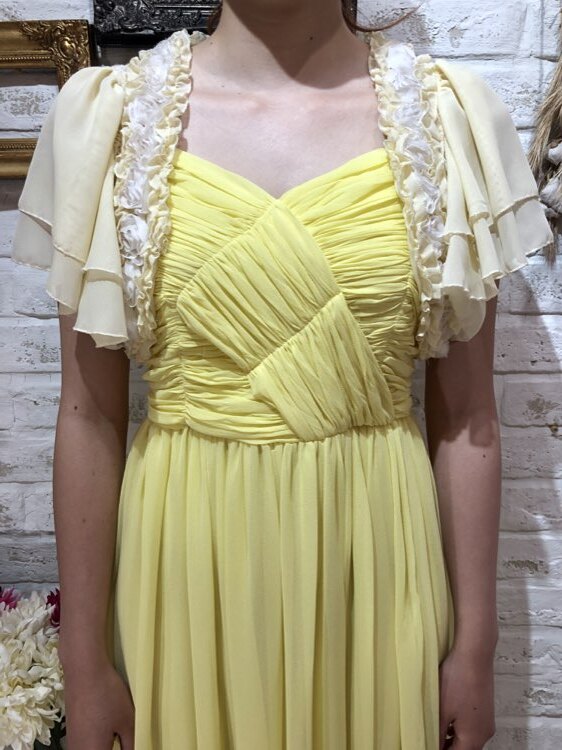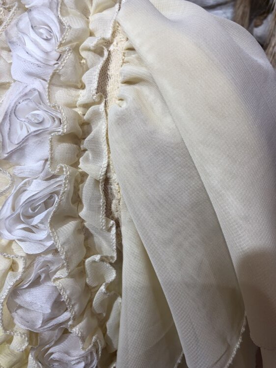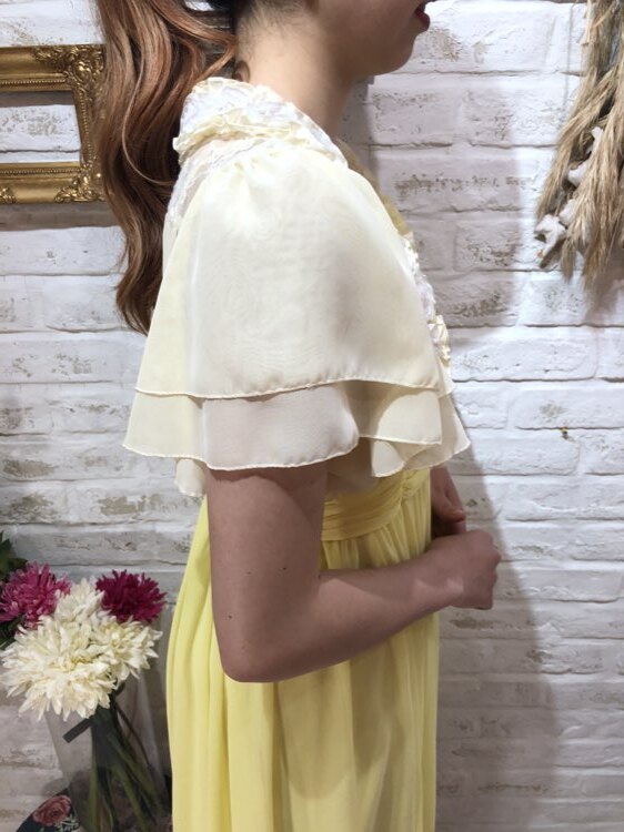 バラ風のフリルが可愛らしいクリームカラーのボレロです。フリルがお顔周りを華やかに演出してくれます。黄みがかったクリームカラーになります。生地はしっかりとしていますが厚くないので1年中着用できるアイテムとなっております。結婚式参列、各種パーティ、お呼ばれ、お食事会など様々なシーンにプラスして頂ける商品です。サイズは目安になりますので必ず表記している実寸サイズをご確認ください。