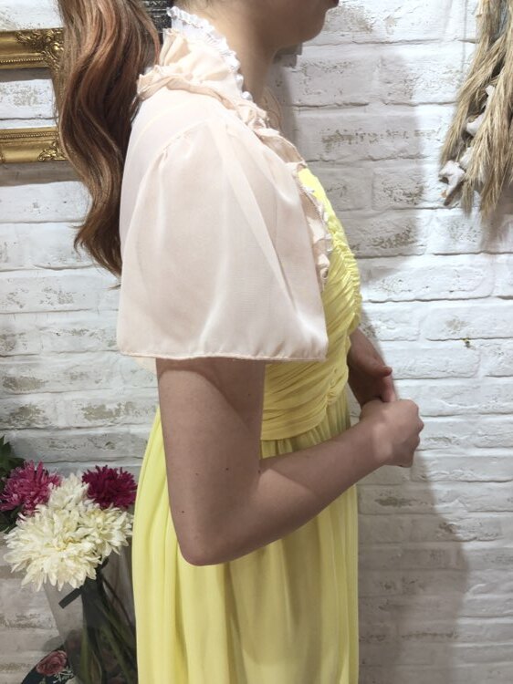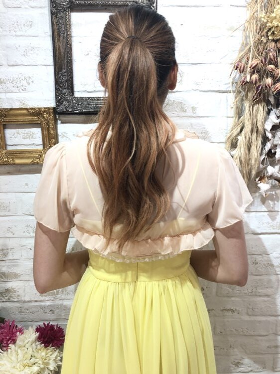 ピンクベージュのフリルボレロ。フリルがお顔周りを華やかに演出してくれます。ピンク寄りのカラーになりますが甘すぎないピンクベージュなので大人可愛いスタイルに。結婚式参列、各種パーティ、お呼ばれ、お食事会など様々なシーンにプラスして頂ける商品です。サイズは目安になりますので必ず表記している実寸サイズをご確認ください。