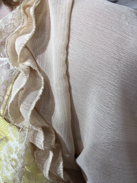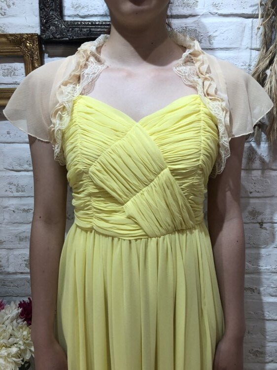 アイボリーカラーのレースボレロです。薄手のシフォン素材とレースで上品なイメージに。様々なドレスのカラーを邪魔しないあわせやすいアイボリー系カラー。薄手にはなりますが1年中着用できる商品です。ショート丈でスタイルアップも狙えます。結婚式参列、各種パーティ、お呼ばれ、お食事会など様々なシーンにプラスして頂ける商品です。サイズは目安になりますので必ず表記している実寸サイズをご確認ください。
