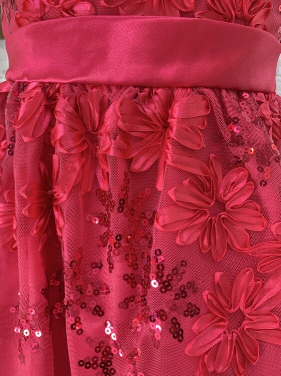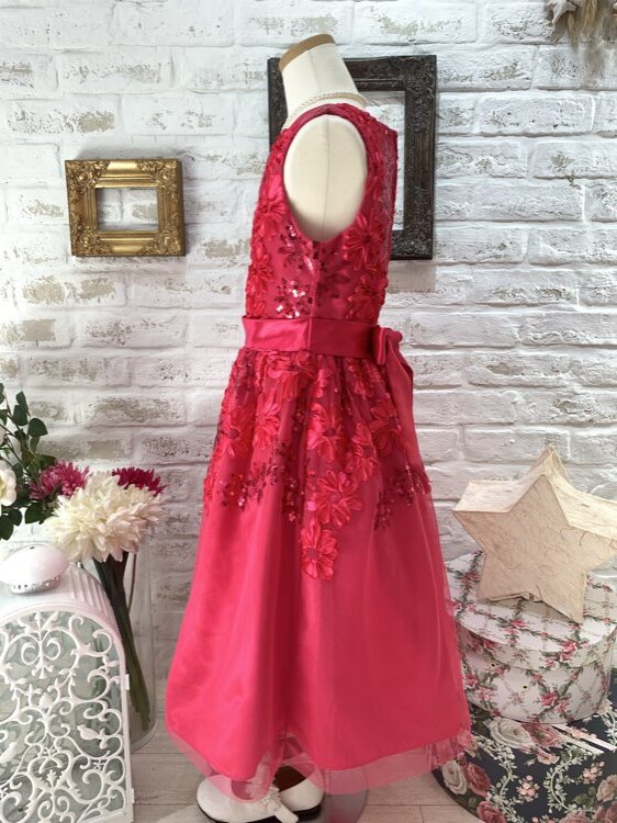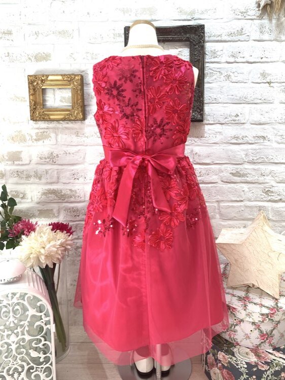お花スパンコールビビッドピンクキッズドレス130-140cm