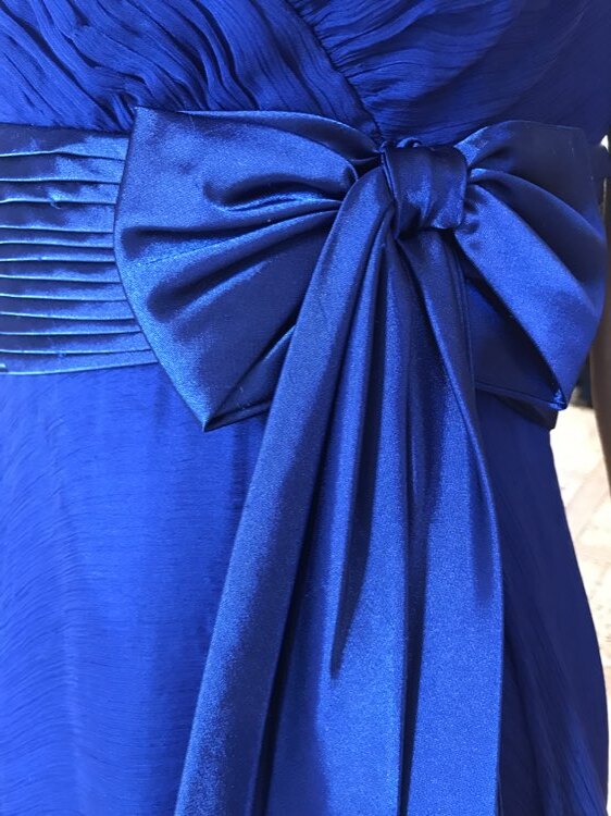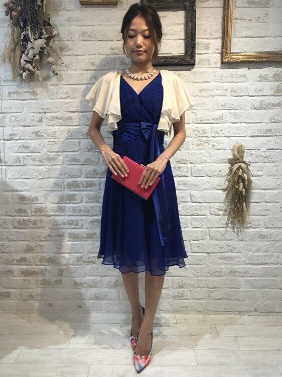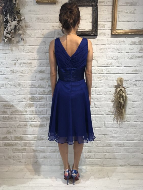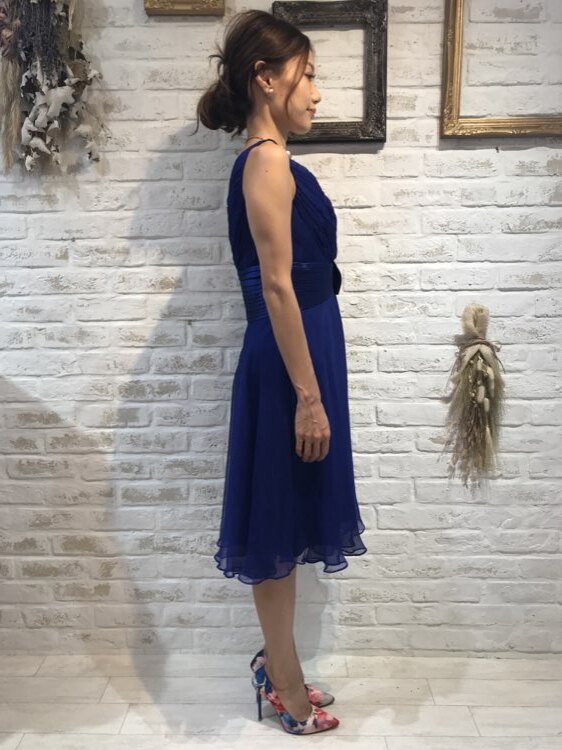 ウエストリボンと膝下の長めのスカート丈が定番人気のドレスです。Vネックで首回りをすっきりと見せてくれますが胸元が気になる方はチューブトップを着用しても◎ シフォン素材のスカートがさらさらと揺れる感じが魅力的な1着です。ウエストの切り替えもスタイルアップを叶えてくれます。ビビッドなブルーは1年中人気のカラーです。謝恩会、女子会、各種パーティーなどにおすすめの1着です。結婚式参列などお呼ばれシーンにはボレロやストールなどを羽織ると露出もおさえられて◎です。