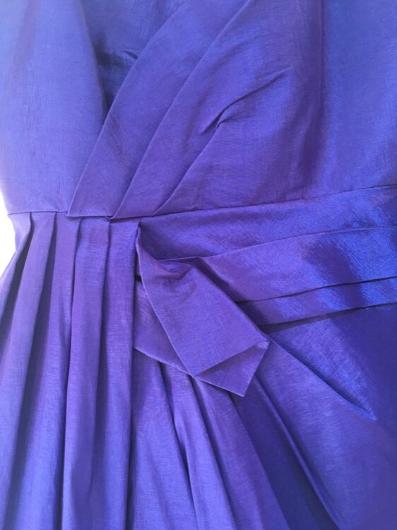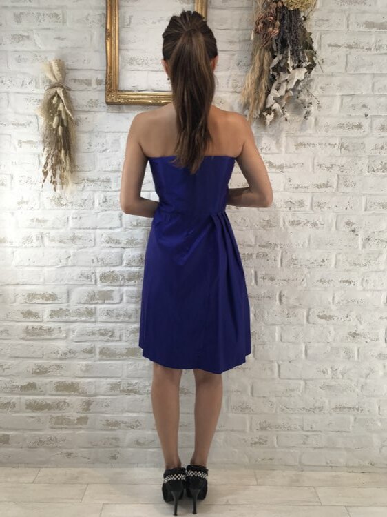 世界的に有名なcalvin klein(カルバンクライン)のブルーカラードレスです。ハリのあるやや光沢感のある素材でクールかつ上品なイメージ。ウエスト部分で絞ったようなデザインはめりはり効果ですっきりと体のラインを美しく見せてくれます。長さ調節可能なストラップ付きなのでお好きな位置で着用できます。ややパープルがかったブルーでとても綺麗なカラーです。お呼ばれなどにはボレロやストールを羽織って頂くと◎です。