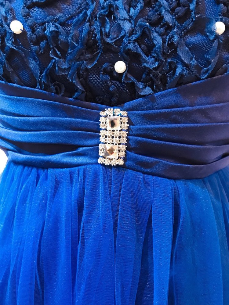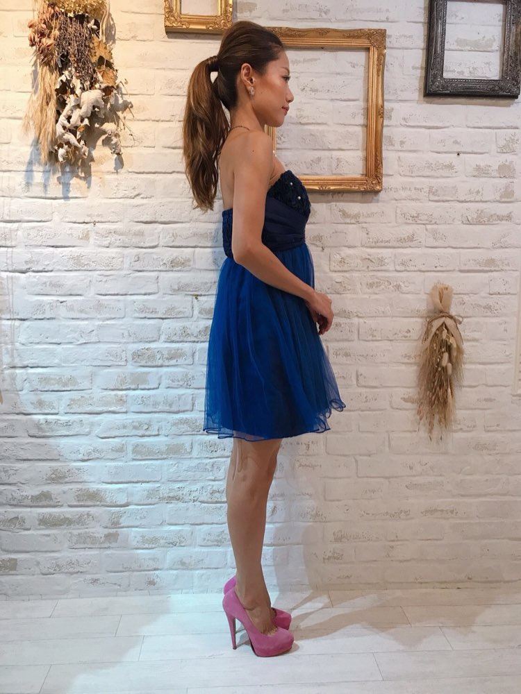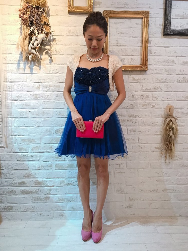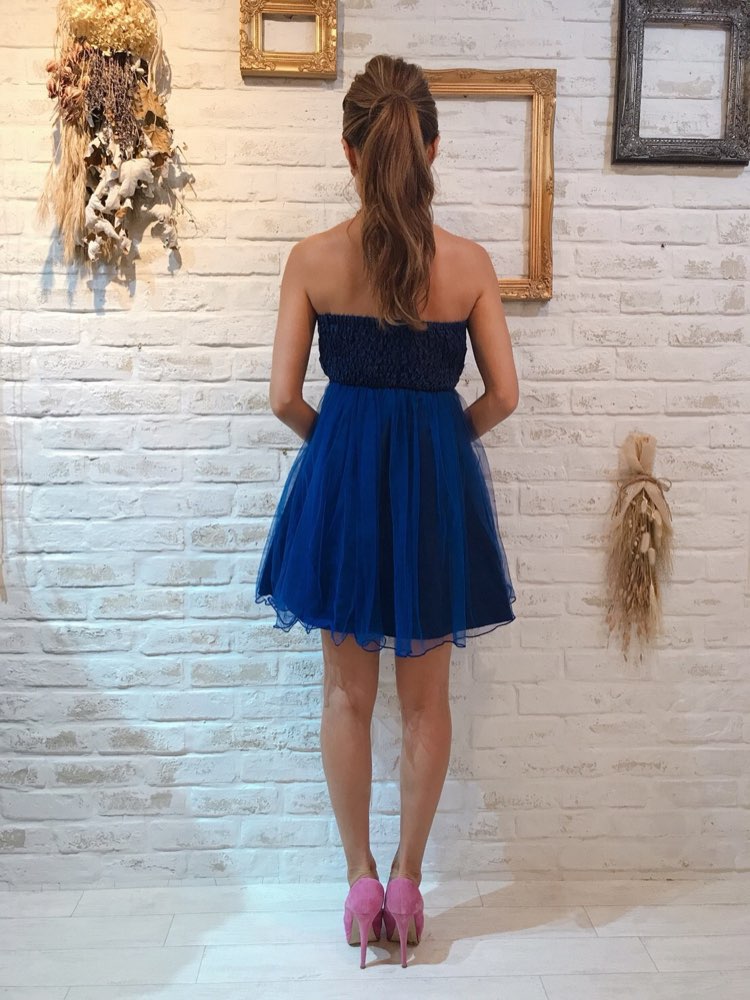 チュールとポイントのストーンがキュートなロイヤルブルーのミニベアドレスです。まるで花びらのようなフリルにポイントでパールが散りばめられたデザイン。ウエストセンターにはキラリと光るストーン付きです。スカートはチュール素材のふわっとしたスカートで可愛らしさと華やかさをプラスしてくれます。お食事会や各種パーティー、謝恩会などにおすすめの1着です。結婚式参列などお呼ばれシーンにはボレロやストールなどを羽織ると露出もおさえられて◎です!