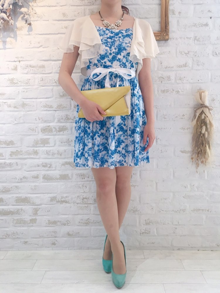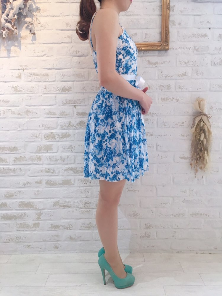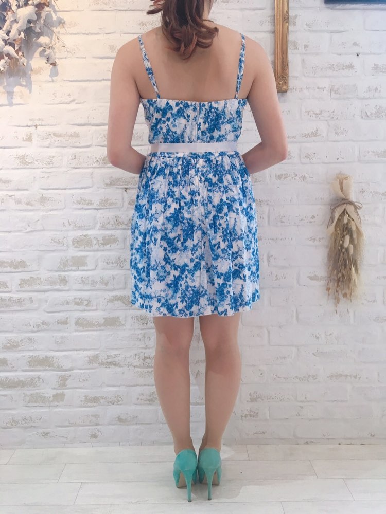 春夏にはえるブルー×ホワイトカラーのサマーワンピース。リゾートやガーデンパーティなど少しカジュアルめ菜イベントにおすすめです。さわやかなホワイトカラーベースにブルーの花柄。ウエストのリボンがガーリーなポイントです。お食事会や各種パーティー、謝恩会などにおすすめの1着です。結婚式参列などお呼ばれシーンにはボレロやストールなどを羽織ると露出もおさえられて◎です!(ストラップが調節可能の為着丈は最短と最長で記載しています)
