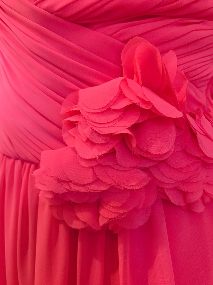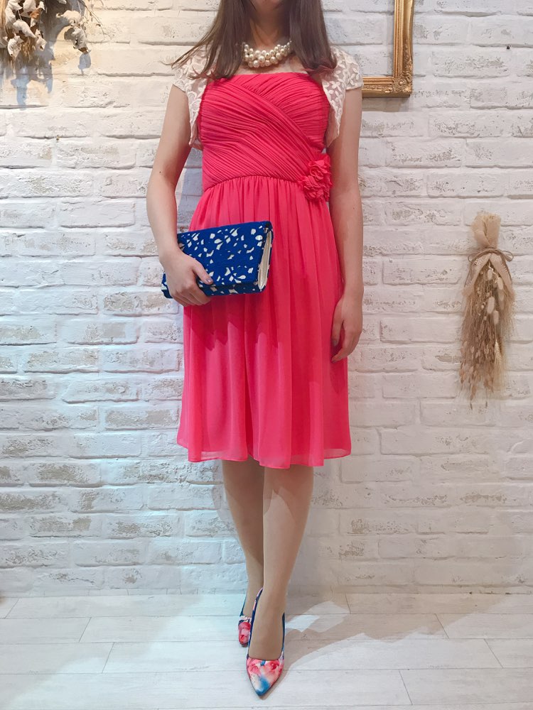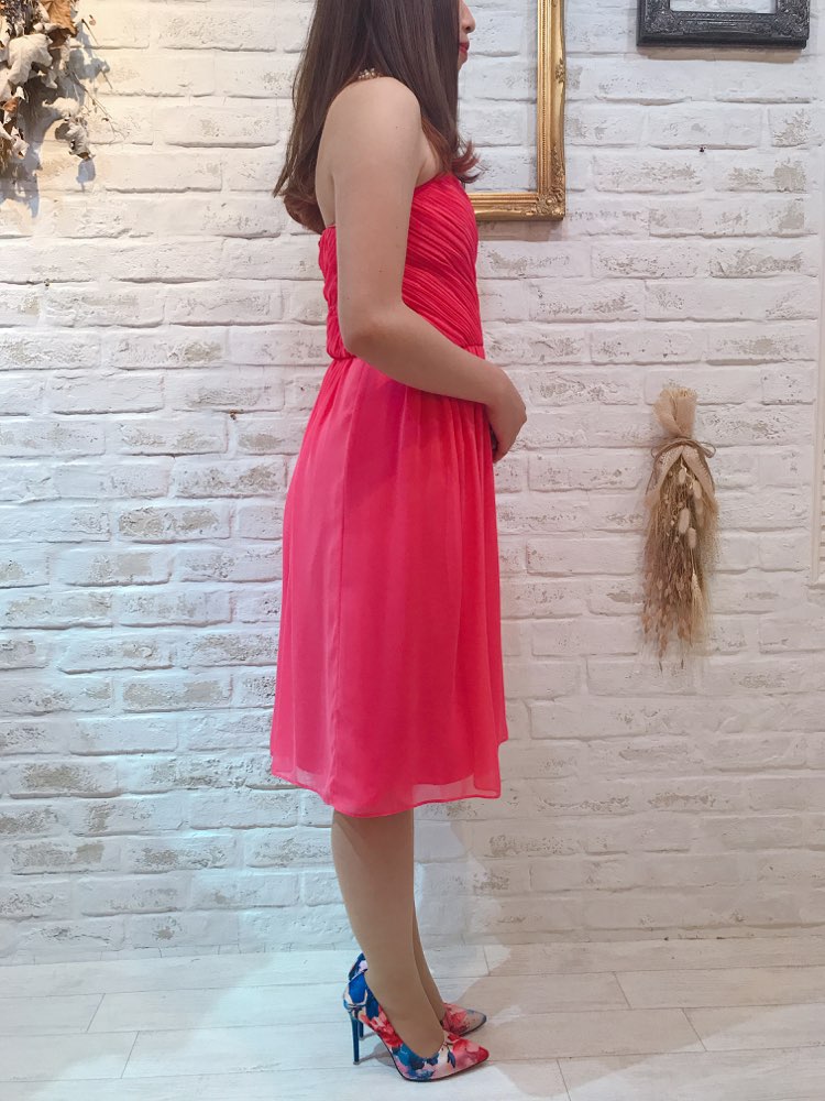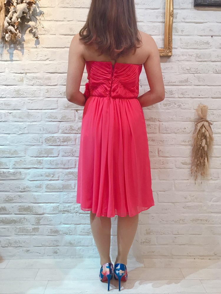 世界的に有名なcalvin klein(カルバンクライン)のビビッドピンクベアドレスです。シフォン素材で1年中着用可能ですが、春夏にはえそうなビビッドなピンクカラー。ウエストには可愛らしいコサージュ付きです。着丈が長めなので身長の高い方にもおすすめです。フレアスカートが動くたびにゆれて魅力的な1着。お食事会や各種パーティー、謝恩会などにおすすめの1着です。結婚式参列などお呼ばれシーンにはボレロやストールなどを羽織ると露出もおさえられて◎です!