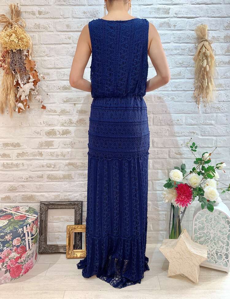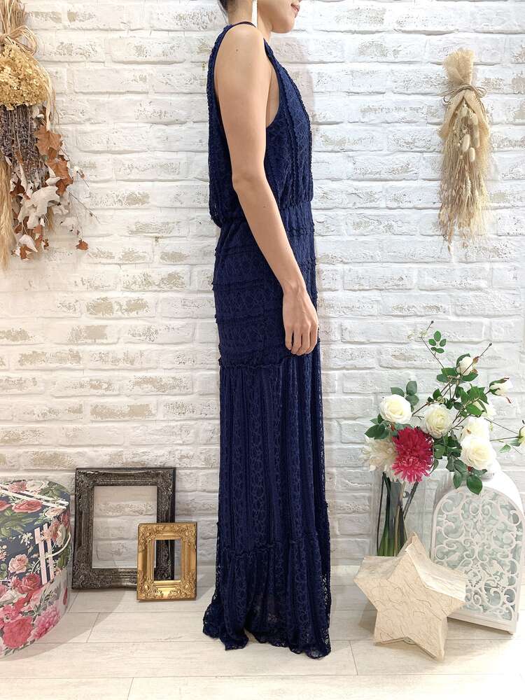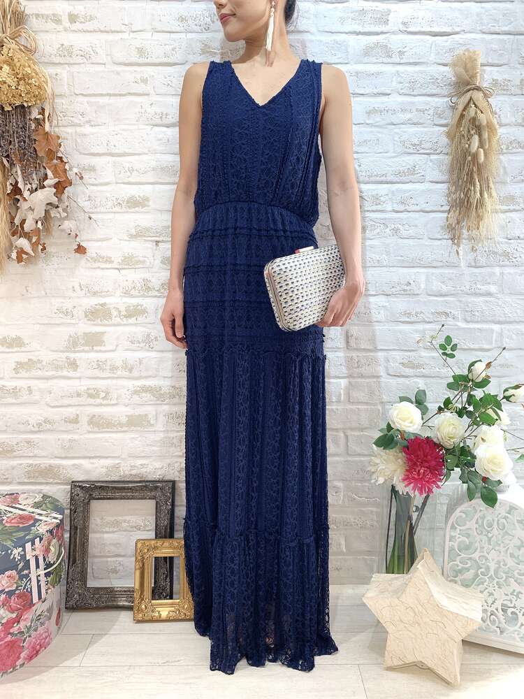 ネイビーレースタンク型ロングドレス