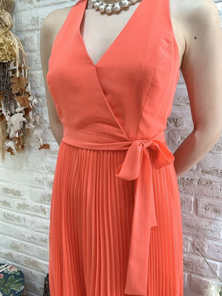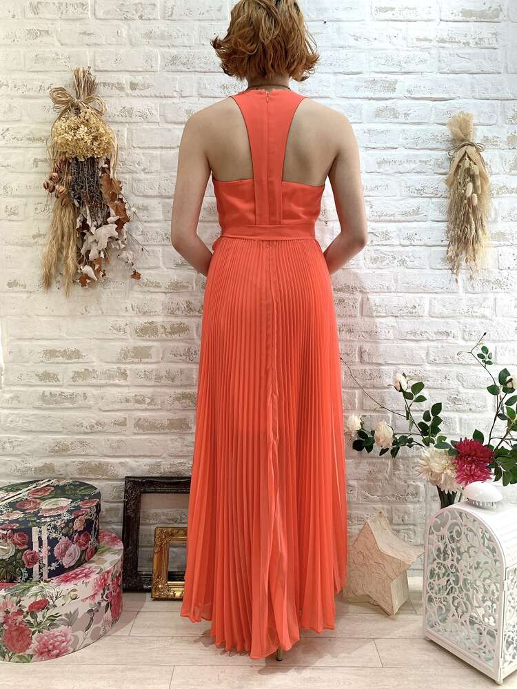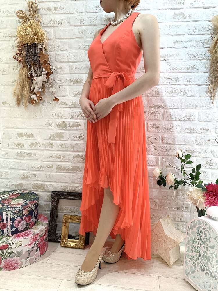 オレンジカシュクールフィッシュテールロングドレス