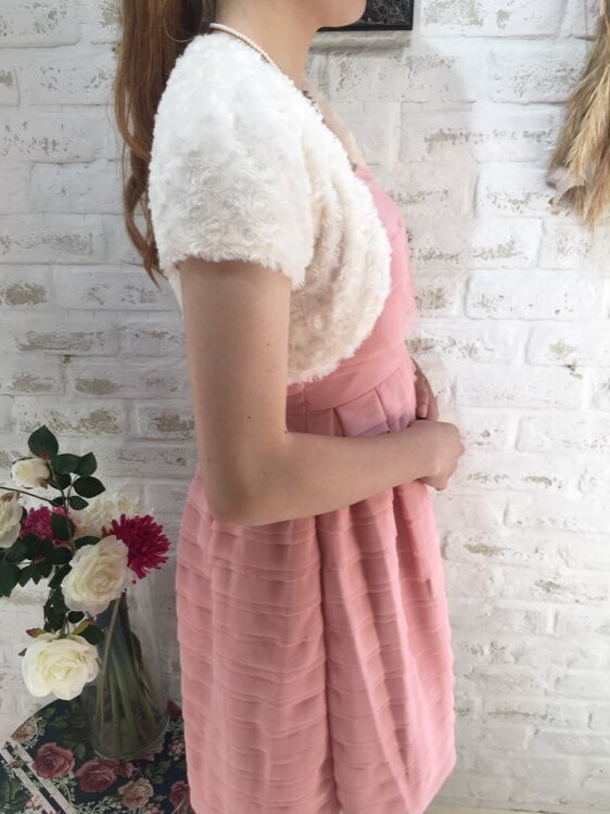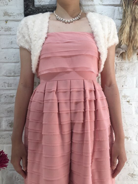 羽織るだけで華やかな雰囲気になるオフホワイトフェイクファーボレロです。カールしたような毛並みが可愛らしい1着。厚すぎない生地なので着ぶくれすることなくファーボレロでもすっきりと着こなせます。クリスマスパーティーや謝恩会、成人式、お食事会、女子会など秋冬の華やかなパーティシーンにおすすめです。サイズは目安になりますので必ず表記している実寸サイズをご確認ください。