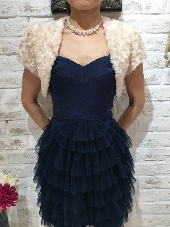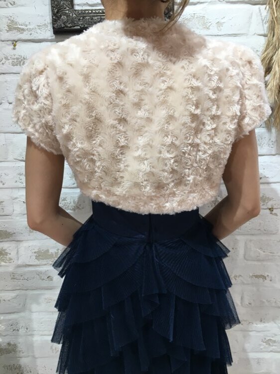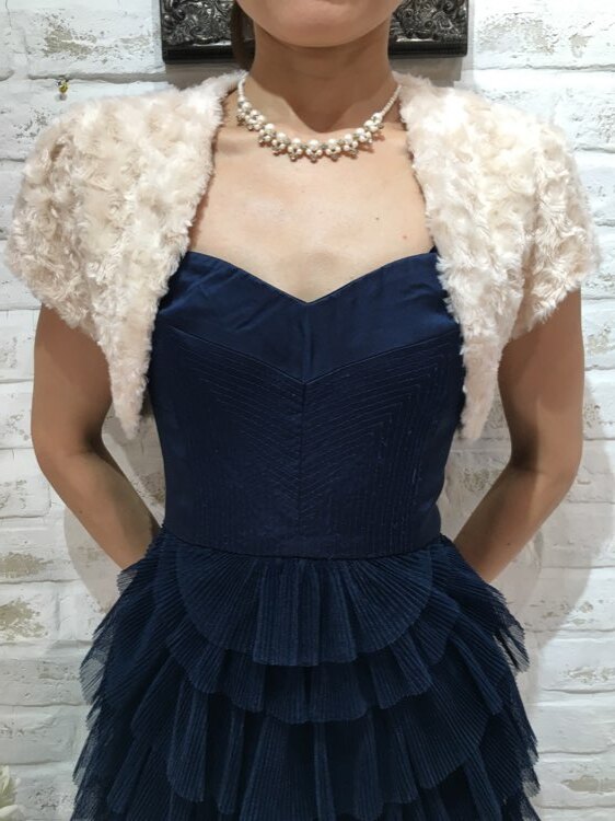 羽織るだけで華やかな雰囲気になるオフホワイトフェイクファーボレロです。カールしたような毛並みが可愛らしい1着。厚すぎない生地なので着ぶくれすることなくファーボレロでもすっきりと着こなせます。クリスマスパーティーや謝恩会、成人式、お食事会、女子会など秋冬の華やかなパーティシーンにおすすめです。サイズは目安になりますので必ず表記している実寸サイズをご確認ください。