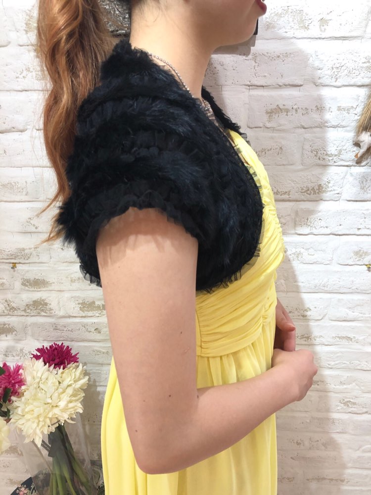 羽織るだけで華やかな雰囲気になるファー×フリルのブラックボレロです。全体的なファーデザインだとゴージャスなイメージになりがちですが、こちらのボレロはファーとフリルが交互になっていますので派手すぎずカジュアルにもきれいめにもあわせやすい1着です。クリスマスパーティーや謝恩会、成人式、お食事会、女子会など秋冬の華やかなパーティシーンにおすすめです。サイズは目安になりますので必ず表記している実寸サイズをご確認ください。