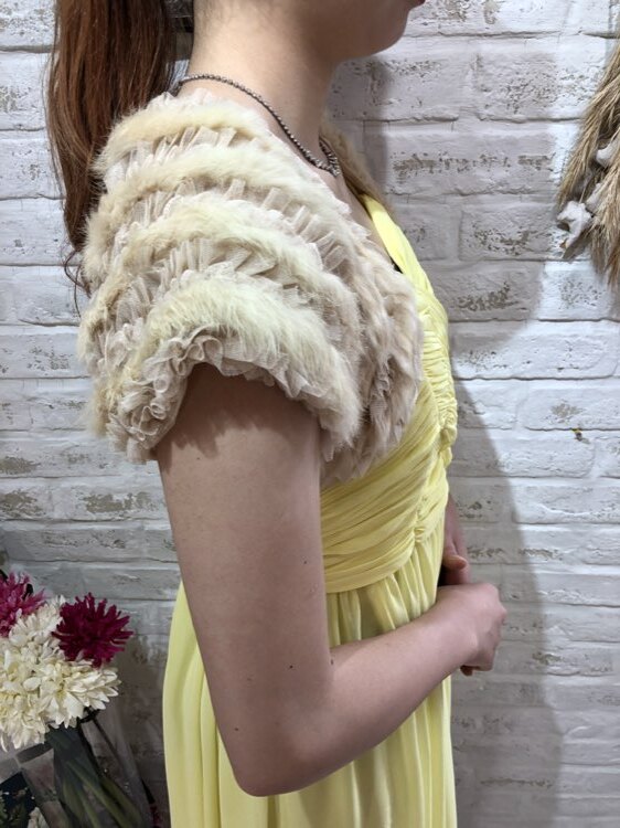 ベージュファー×チュール交互ボレロ