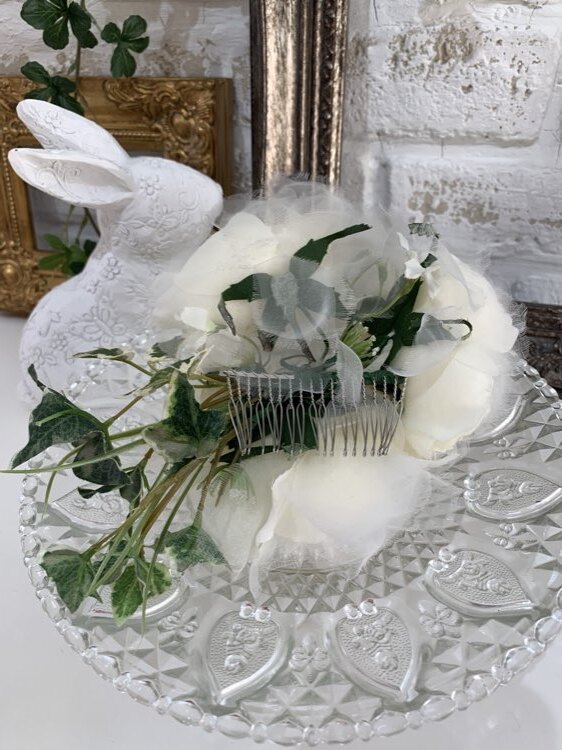 ホワイト×グリーン大きめフラワーヘッドアクセ