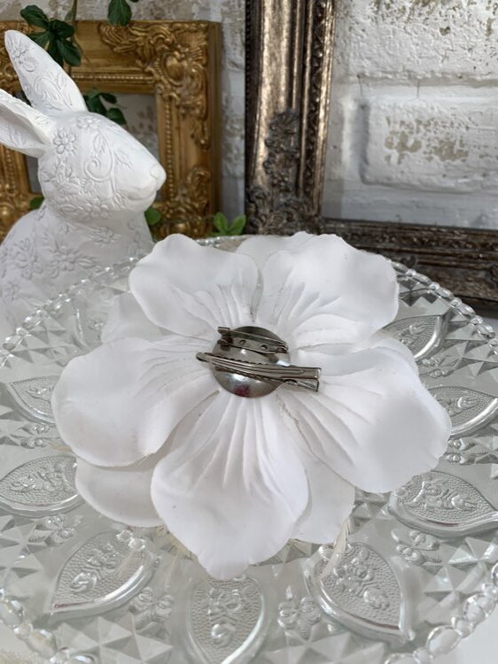 中にフェザーと3本ストーン付ホワイトコサージュ