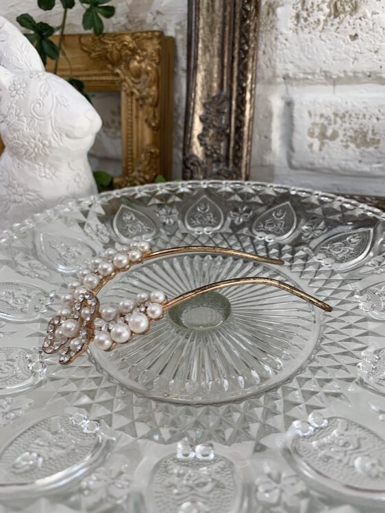 クローバーモチーフパール付ゴールドヘッドアクセ
