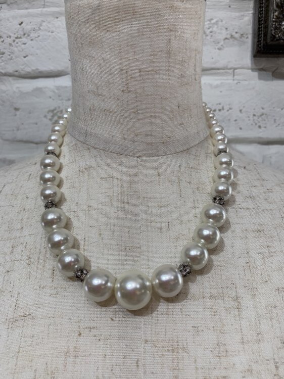 大きさ違いパール×ミラーボールシルバーネックレス