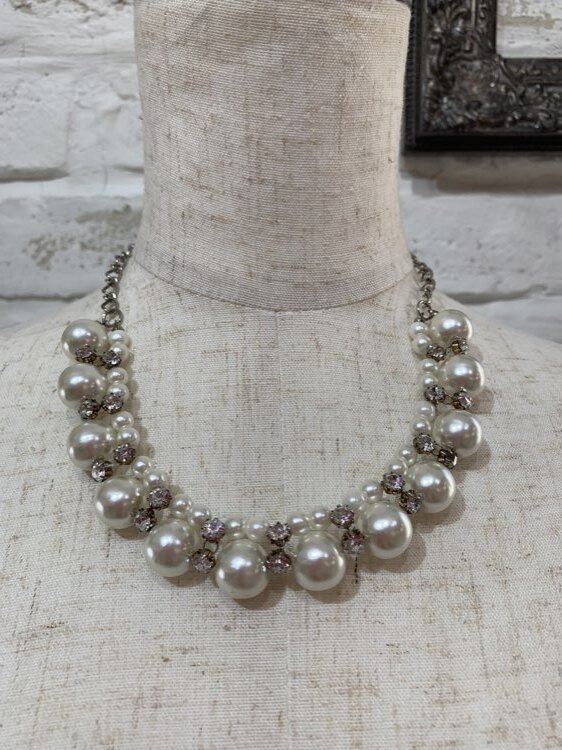パール×ゴールドストーンネックレス