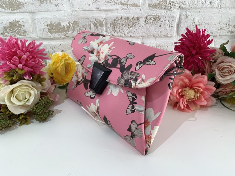 フラワー&バタフライ柄クラッチ(ピンク)
