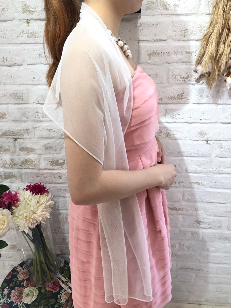 小さめサイズのアイボリーカラーチュールストールです。とても透け感のあるデザイン。ドレスのデザインを邪魔せずに見せたい方におすすめの1点。どんなカラーにもあわせやすいアイボリーカラーです。結婚式参列・謝恩会・成人式・各種パーティ・お食事会・お呼ばれなど様々なシーンに使って頂けます。必ず記載している実寸サイズをご確認ください。