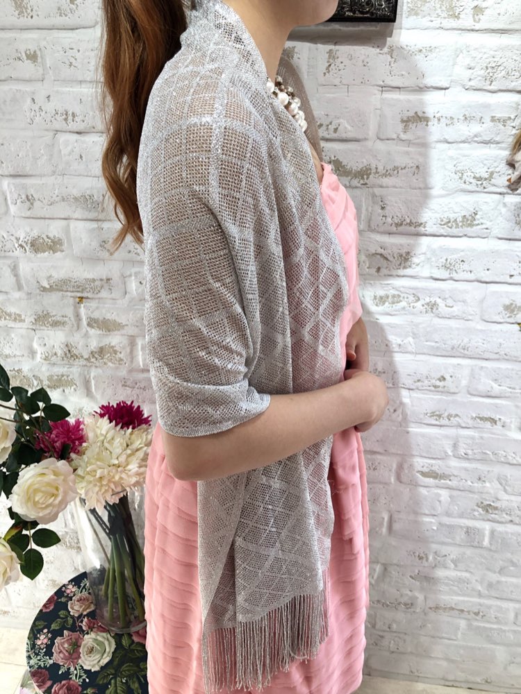 クール系のコーディネートの仕上げにおすすめなブロンズカラーストールです。落ち着いたブロンズカラーは甘いスタイルより辛口スタイルがお好きな方に是非羽織って頂きたいアイテムです。落ち着いた色味ではありますが生地にラメ感があるので華やかなドレスにもあわせやすい1点です。結婚式参列・謝恩会・成人式・各種パーティ・お食事会・お呼ばれなど様々なシーンに使って頂けます。必ず記載している実寸サイズをご確認ください。