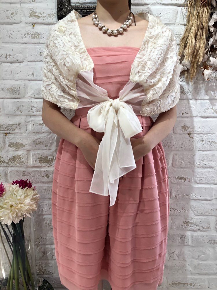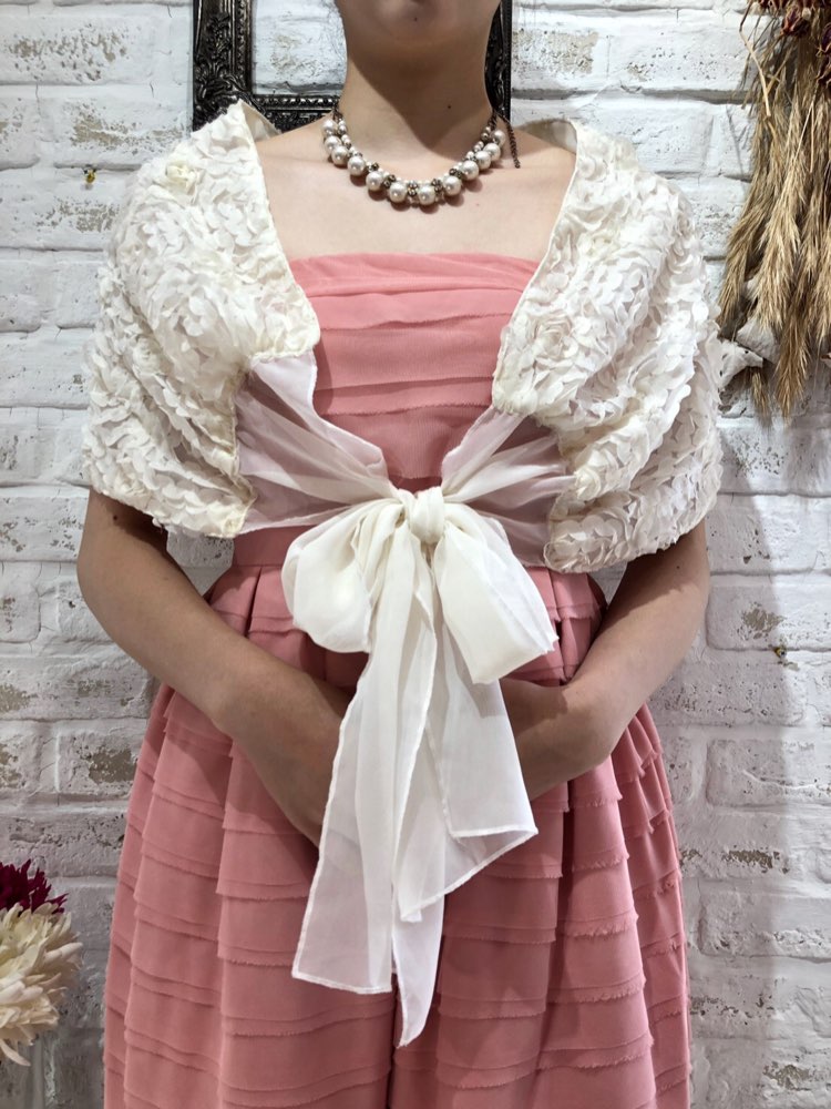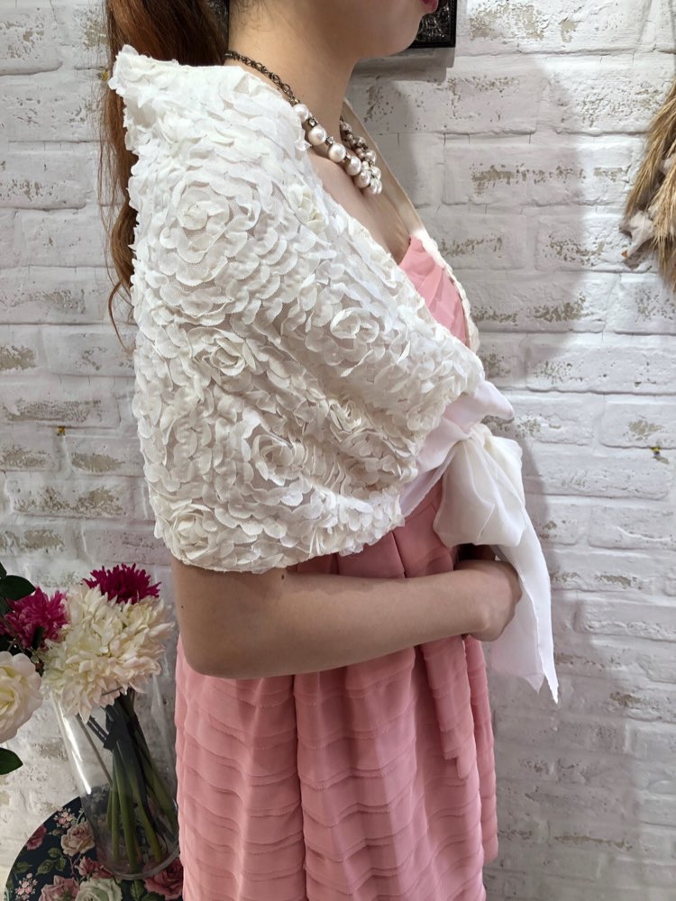 花びら風フリルが華やかな雰囲気のアイボリーカラーのストーです。リボンを正面で結ぶタイプ。お好みの位置で調節してください。どんなカラーのドレスにもあわせやすい明るめのアイボリーカラーはお顔を明るく見せてくれる効果も期待できます。キュート系のAラインドレスやクール系のタイトドレスなど比較的どんなドレスにもあわせやすいデザインです。結婚式参列・謝恩会・成人式・各種パーティ・お食事会・お呼ばれなど様々なシーンに使って頂けます。必ず記載している実寸サイズをご確認ください。