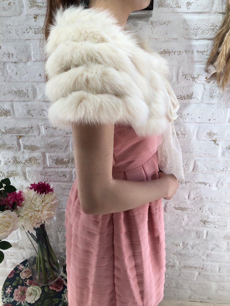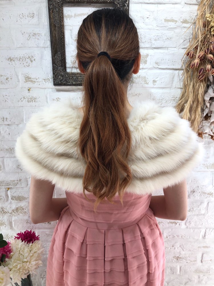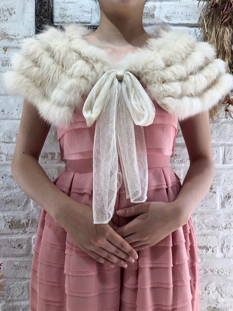 コーディネートに追加するだけでシーズンムードあふれるリアルファーストールです。肌触りとてもやわらかなフォックスファー仕様。正面でリボンを結んで羽織るタイプです。コンパクトなサイズ感なのでファー特有の着ぶくれ感もなくコンパクトなコーディネートが完成します。チュール素材のリボンはドット柄がポイント。クリスマスパーティーや謝恩会、成人式、お食事会、女子会など秋冬の華やかなパーティシーンにおすすめです。サイズは目安になりますので必ず表記している実寸サイズをご確認ください。