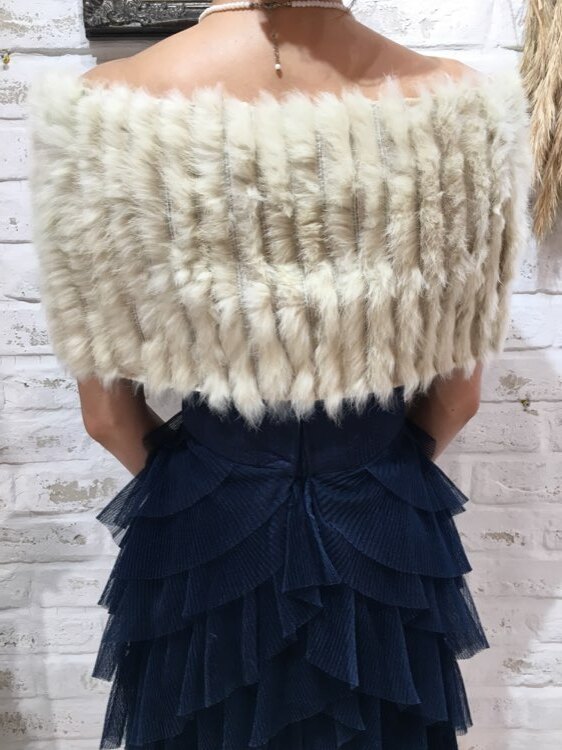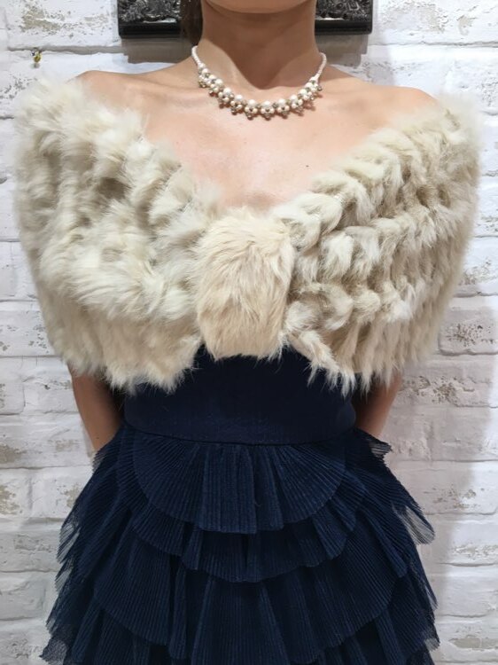 羽織るだけでシーズンムードあふれるリボン型ファーケープです。ニット素材になっており伸縮性有り。中央のデザインを正面に持ってきたり、斜めにもってきたり、オフショルダーにしてみたり… お好みで楽しめます。クリスマスパーティーや謝恩会、成人式、お食事会、女子会など秋冬の華やかなパーティシーンにおすすめです。サイズは目安になりますので必ず表記している実寸サイズをご確認ください。