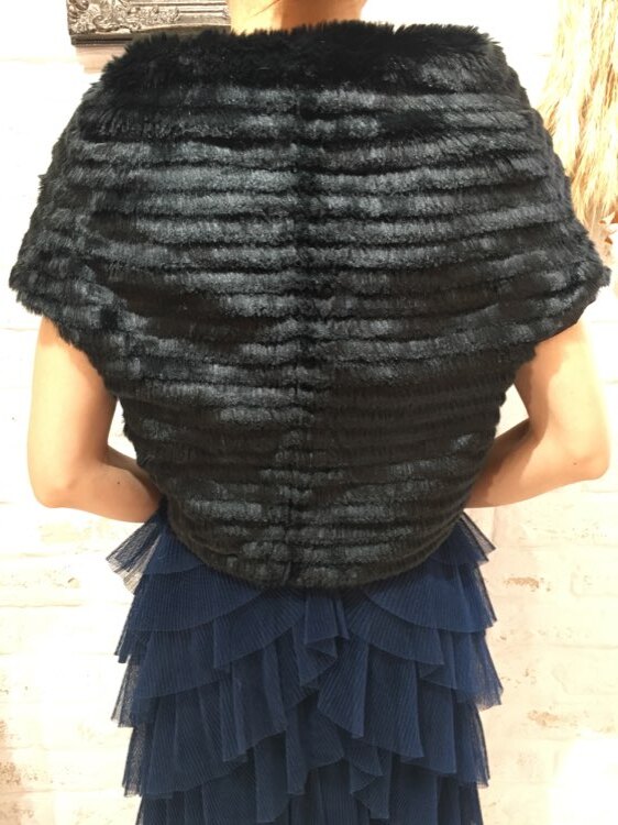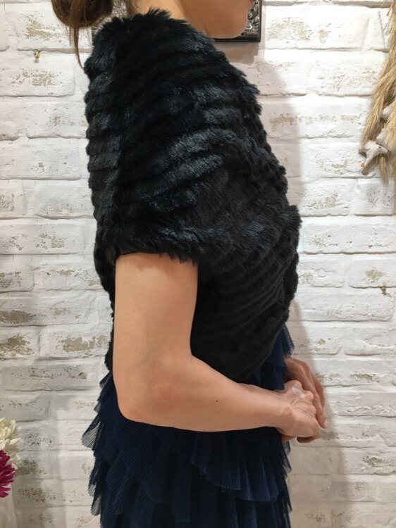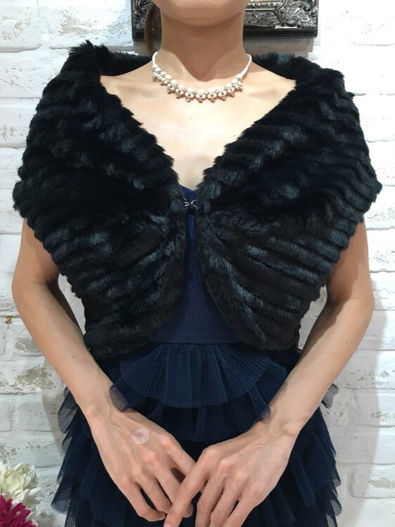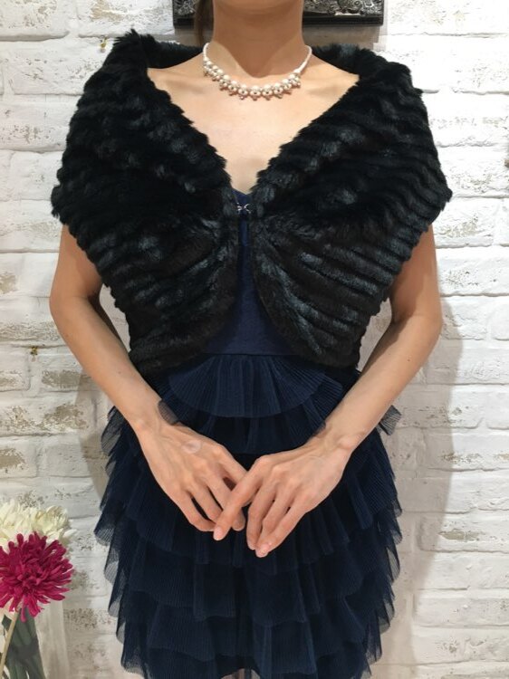 羽織るだけでシーズンムードあふれるフェイクファーケープ風ボレロです。一見、ケープ型のデザインですがアームホールがあるのでずれ落ちる心配もなく安心してイベントが楽しめる1着です。正面についているホックを留めてその上にブローチなどをつけても素敵です。定番のブラックカラー。可愛い系にもきれいめ系にもあわせやすいデザインです。クリスマスパーティーや謝恩会、成人式、お食事会、女子会など秋冬の華やかなパーティシーンにおすすめです。サイズは目安になりますので必ず表記している実寸サイズをご確認ください。