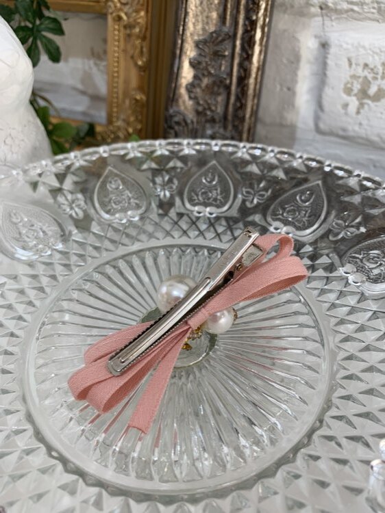 結婚式参列・発表会・Xmas、ハロウィーンパーティーなど華やかなシーンにおすすめのキッズ用ヘッドアクセサリーです。リボンにパール付き。小さめサイズなので幼いお子様にもバランス良くつけて頂けます。後ろにはクリップがついておりますのでヘアに留めるだけでかんたんに着用して頂けます。サイドやヘア結び目などにおすすめです。色違いでピンク、イエロー、ホワイト、グリーン有り。