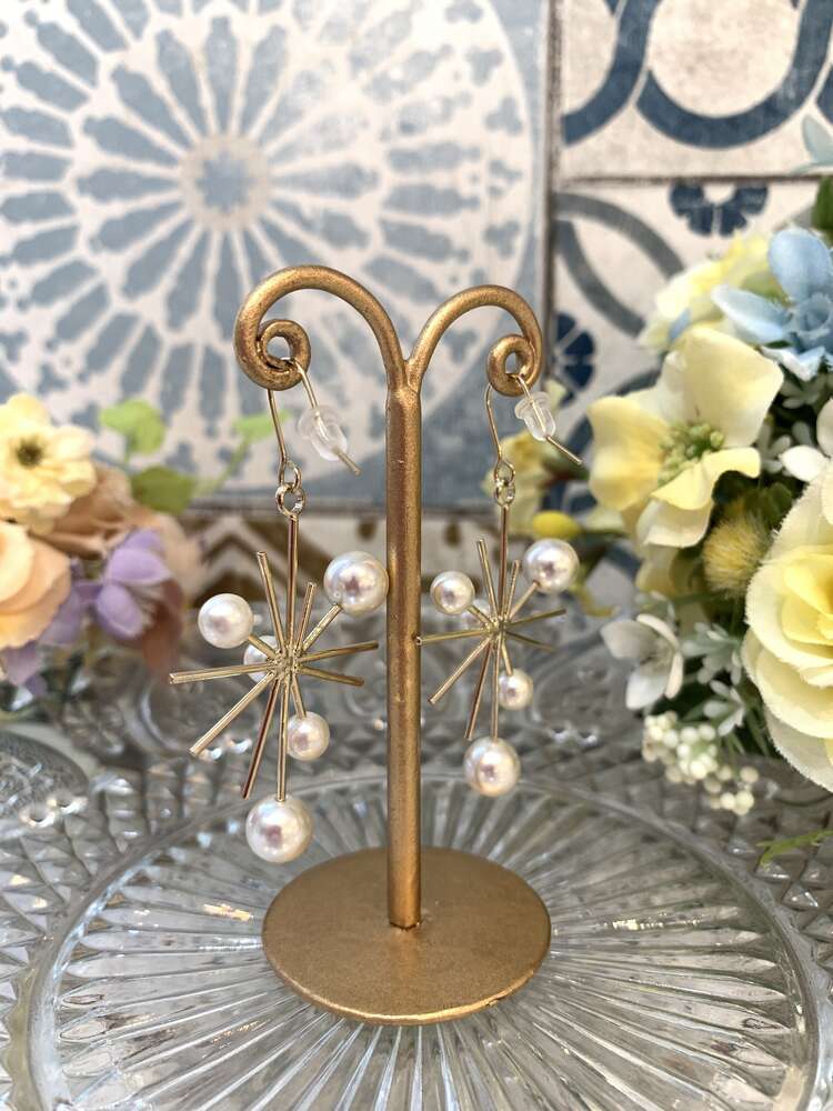 ゴールド×パールデザインフックピアス