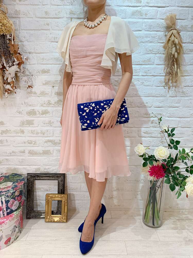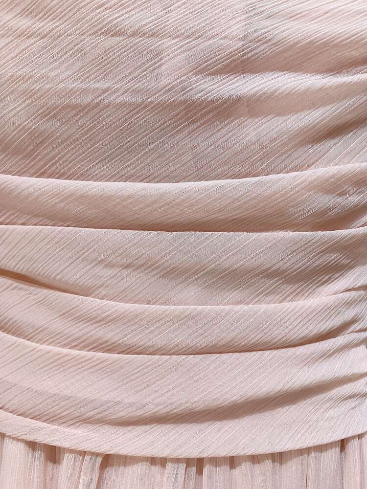 シフォン素材がやわらかい印象のベビーピンクカラードレスです。上品で女性らしいイメージのシフォン素材のベアドレスは、サイズ違いで4着ございますのでブライズメイドにもおすすめ。丈も短すぎないので身長が高めの方にも着用して頂けます。(記載している実寸サイズを必ずご確認ください。着用スタッフ身長164センチ)お食事会、謝恩会、女子会、各種パーティーなどにおすすめの1着です。結婚式参列などお呼ばれシーンにはボレロやストールなど羽織ると露出もおさえられて◎です。