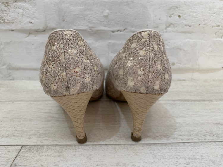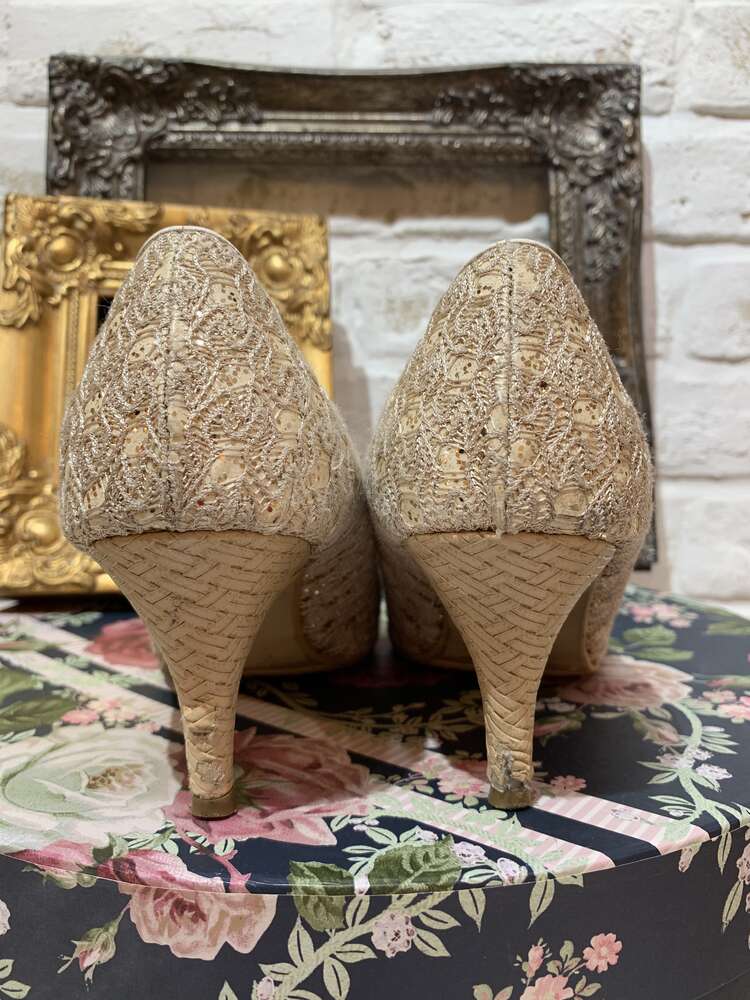 ゴールドラメレース低めオープントゥパンプス24.5