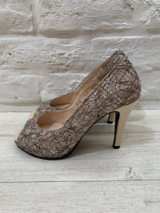 ブラウン×ピンクオープントゥパンプス24.5