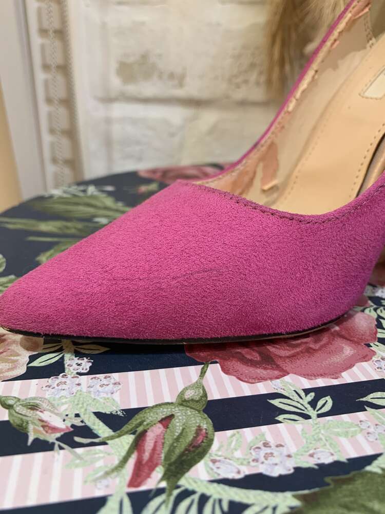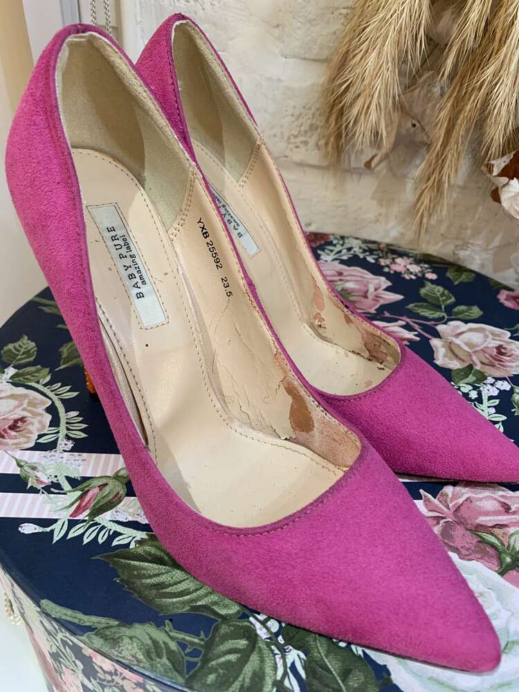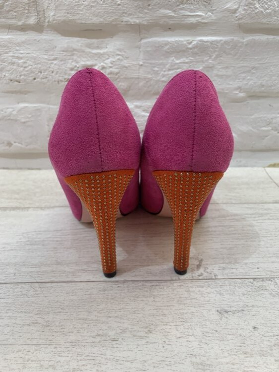 ピンクかかとスタッズポイントトゥパンプス23.5