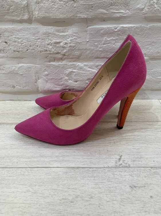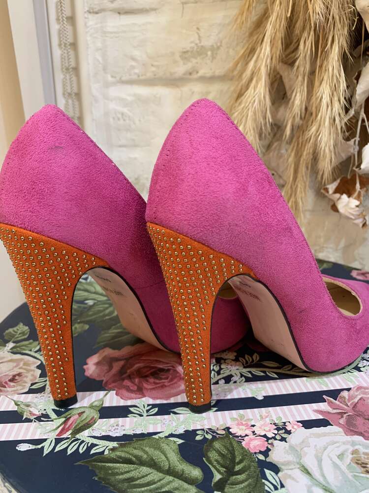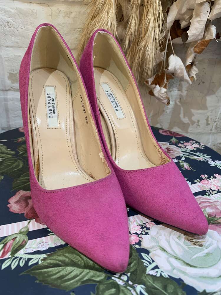 ピンクかかとスタッズポイントトゥパンプス22.5