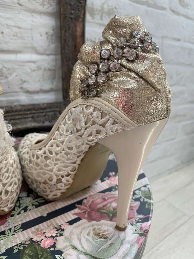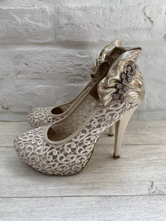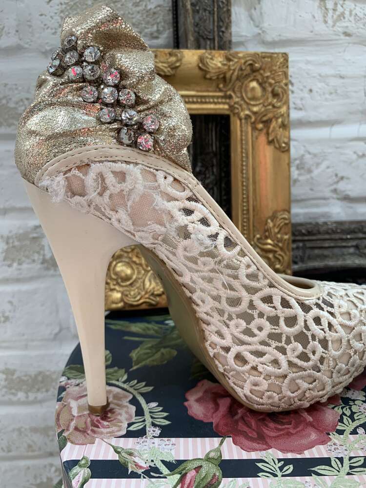 白レース後ろビジューパンプスS