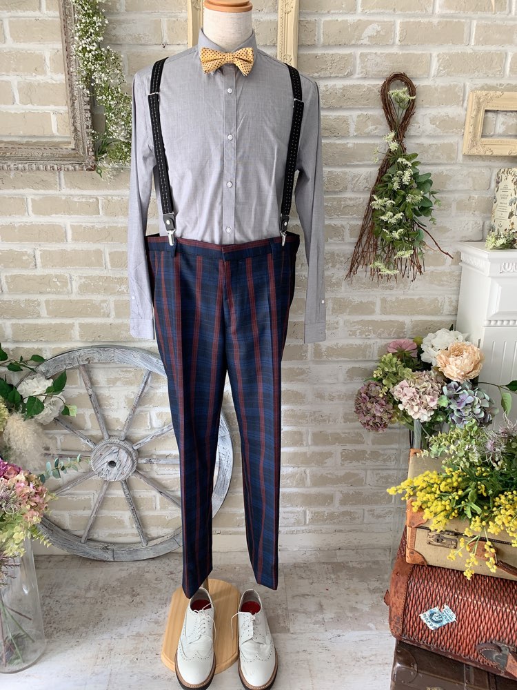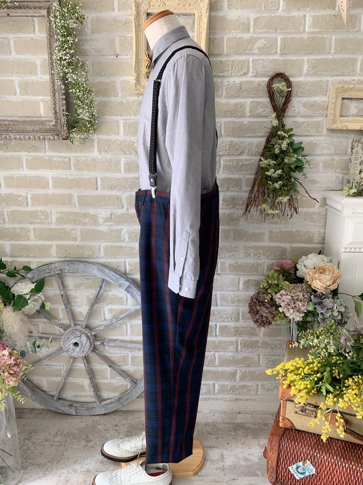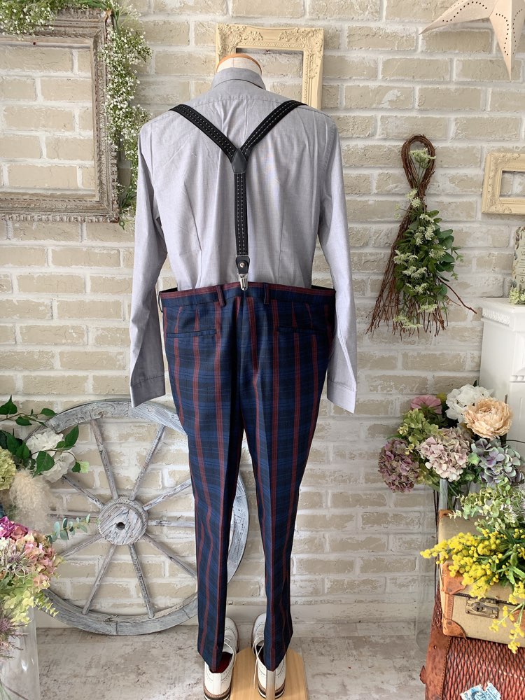asosネイビー×ワインレッドのタータンチェック柄パンツ 40