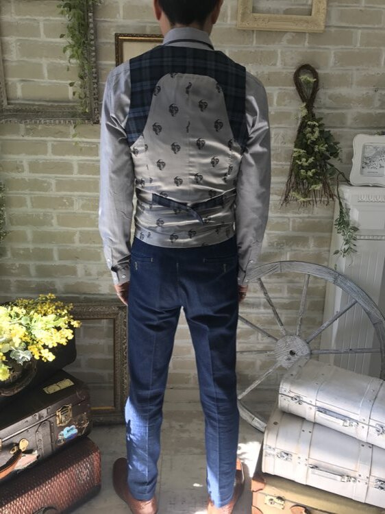 ステッチ入りノンウォッシュデニムのタキシード。ジャケット、ベスト、パンツの3ピースで揃えてもベストのみチャックやカラーベストを差し色として合わせるのもオススメです。パンツはストレッチ加工されているのでスァッタ時も楽ちんな心地よい履き心地です。サイドポケット付き。バックにもポケット付き。センタークリース入り。スリムフィット―太もも、膝、足首にピタッとフィットし、レッグラインに沿ったシルエットを綺麗に創り出します。また白のウィングカラーシャツを合わせればきちんとして爽やかなコーディネートになります。二次会の披露宴・結婚式・ゲスト結婚式の参列向け、パーティースーツ・二次会・海外ウェディング・海沿いの会場、リゾートウェディング・フォトウェディング、前撮りにまで幅広いシーンでご使用いただけます。