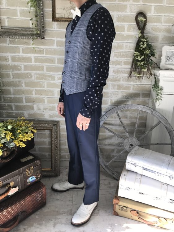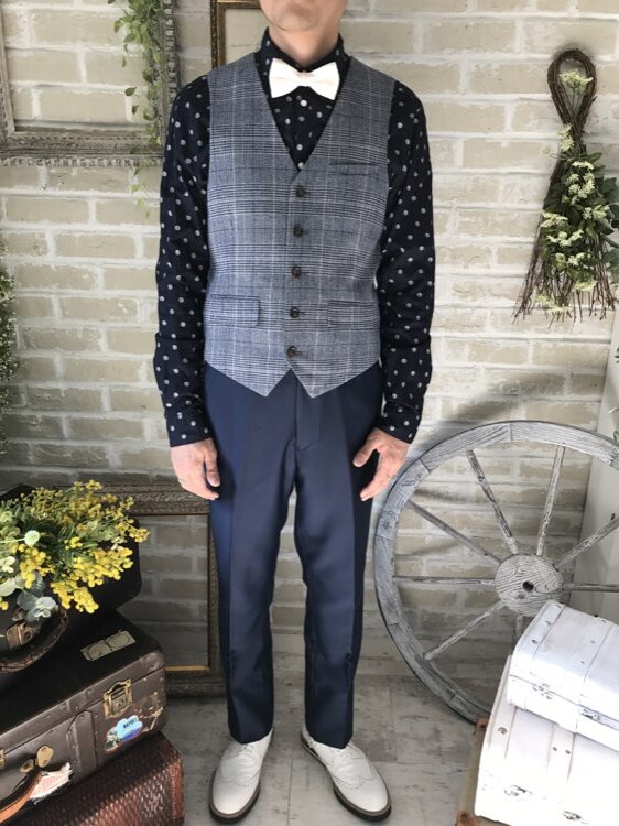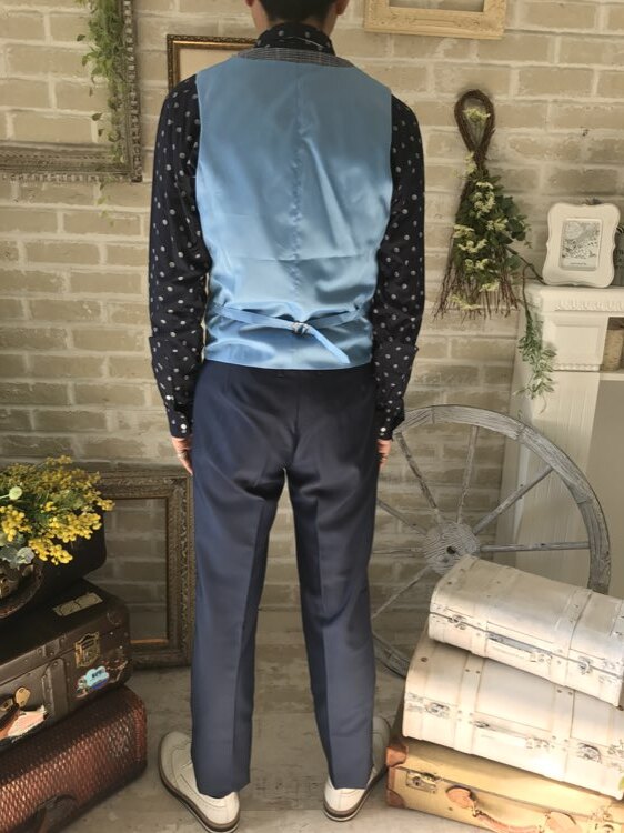 明るめなネイビーブルーの光沢のある白のパイピングの入ったマリンなタキシード。下襟の先がとがったピークドラぺルタイプ。パンツはサイドポケット付き。バックにもポケット付き。センタークリース入り。スリムフィット―太もも、膝、足首に緩やかなラインでフィットし、レッグラインに沿ったシルエットを綺麗に創り出します。ジャケット、パンツの2ピース。ベストのみチェック柄や、ワインレッドやグレー、ホワイトカラーなどのベストを差し色として合わせるのもオススメです。リゾートウェディングや夏の二次会、カジュアルなパーティーには、パンツを白デニムで合わせてもおしゃれです。合わせるシャツをチェック柄や、水色・グレーのシャツで合わせてカジュアルな二次会タキシードとしても素敵。また白のウィングカラーシャツを合わせればきちんとした結婚式や披露宴向けのフォーマルなコーディネートになります。二次会の披露宴・結婚式・ゲスト結婚式の参列向け。パーティースーツ・二次会・海外ウェディング・海沿いの会場、リゾートウェディング・フォトウェディング、前撮りにまで幅広いシーンでご使用いただけます