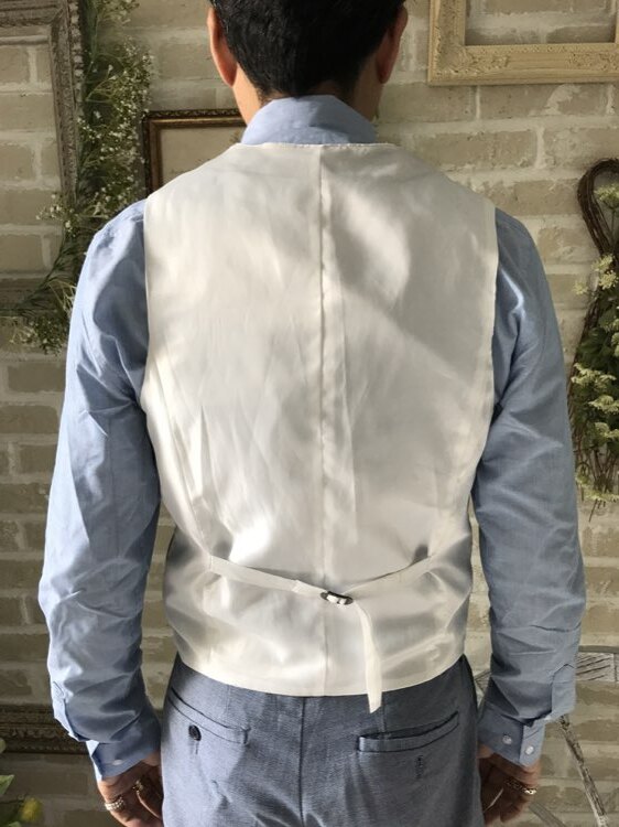 ベージュブラウンの光沢のないカジュアルなウールミックス素材のベスト。同じシリーズのセットジャケットは下襟の先がとがったピークドラぺルタイプ。ジャケット、パンツ、ベストの3ピースタイプ。また白のウィングカラーシャツを合わせればきちんとした結婚式や披露宴向けのフォーマルなコーディネートになります。披露宴・結婚式・ゲスト結婚式の参列向け。パーティースーツ・二次会・海外ウェディング・フォトウェディング、前撮りにまで幅広いシーンでご使用いただけます。秋冬に適してます。