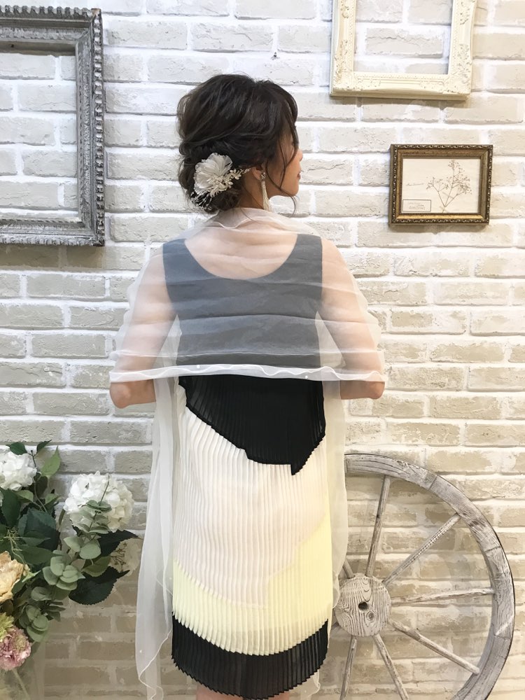 オーガンジーでパーツがついておりボリューム感が出るストールになっています。