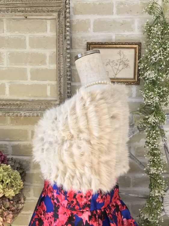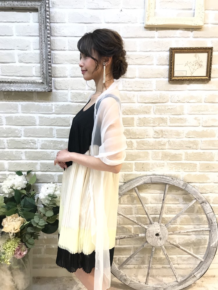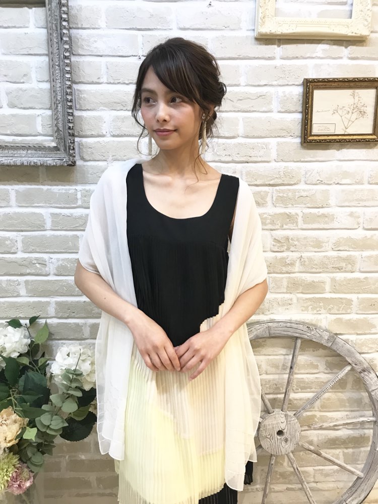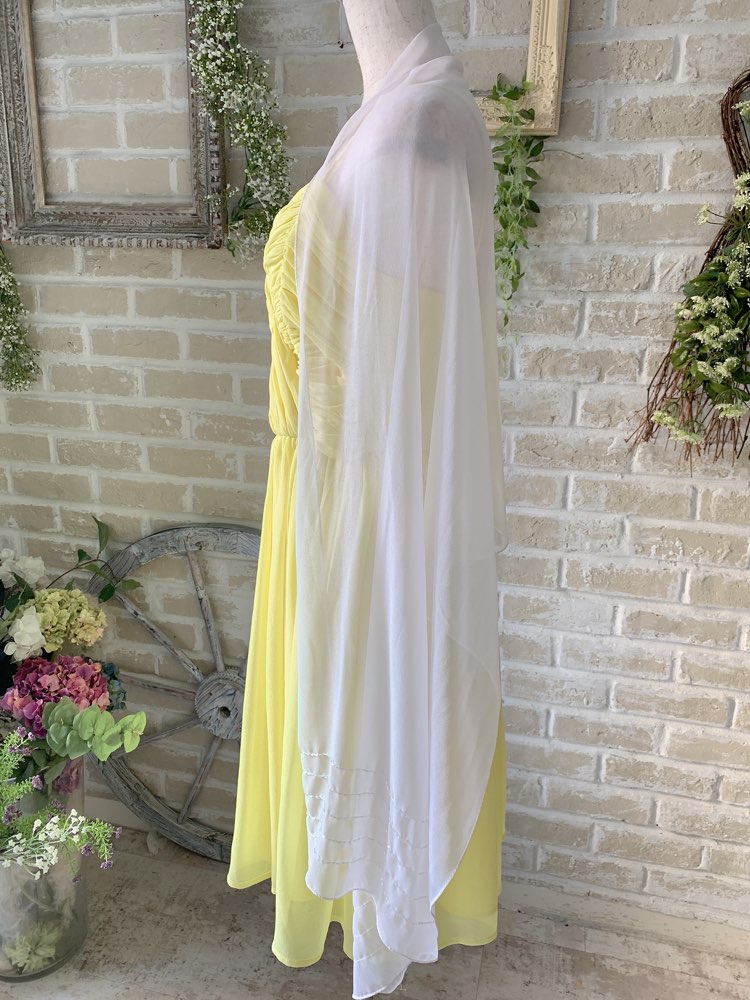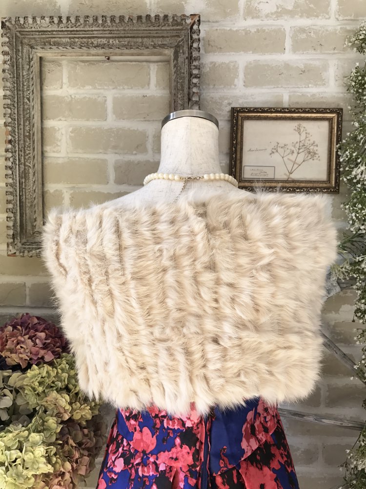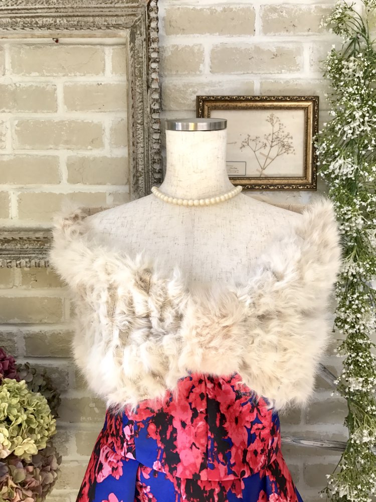 気品ある雰囲気にドレスアップを叶えるベージュケープ。マフラータイプなので首元が華やかな印象になります。シンプルなドレスも、このケープを羽織ればワンランク上の装いになり華やかさも増します。結婚式、パーティや同窓会などにもおすすめです。