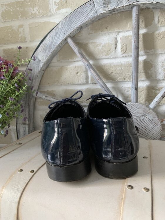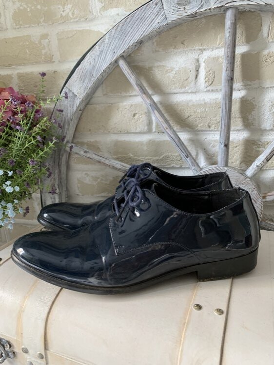 黒ネイビーエナメル26-26.5 レースアップ ストレートッチップ