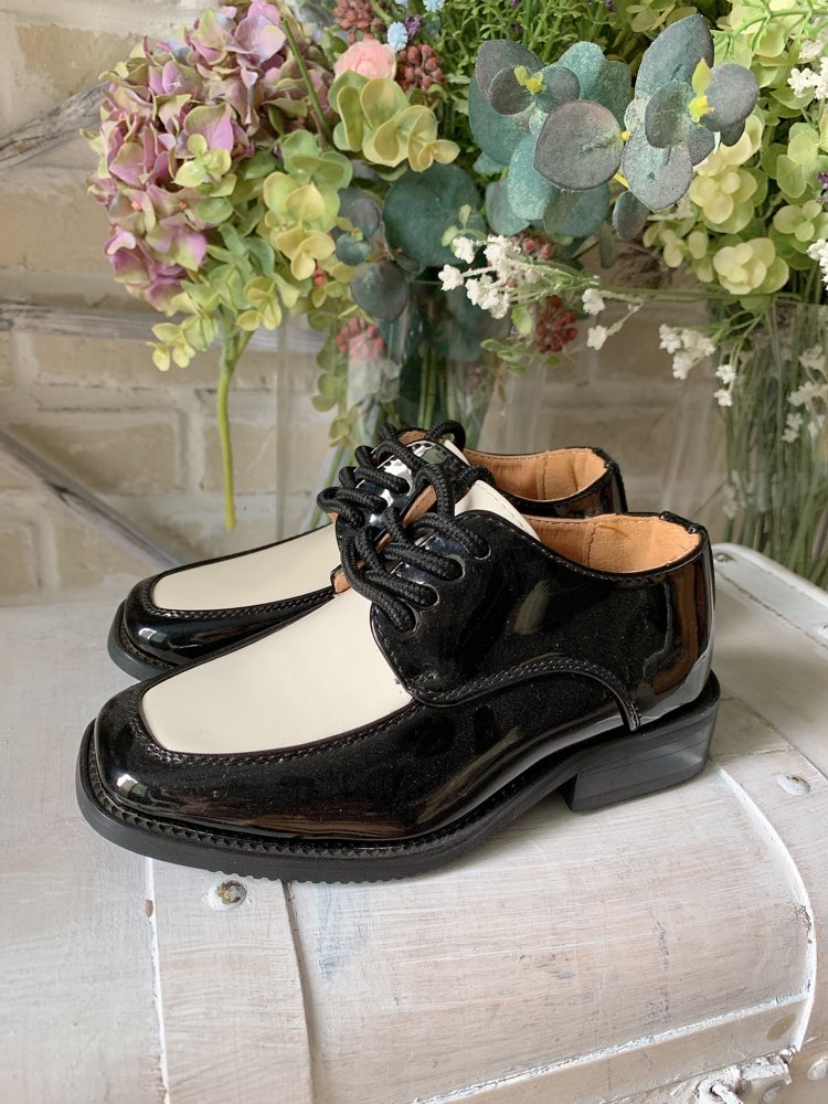 キッズ 男の子 ホワイト エナメル レースアップ シューズ