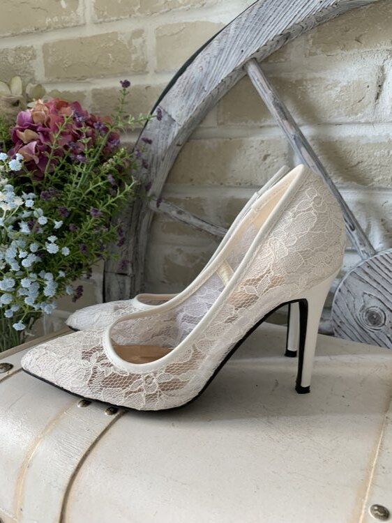 ホワイトレースポインテッドトゥパンプスc