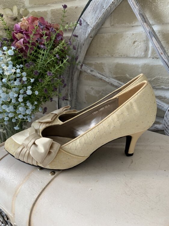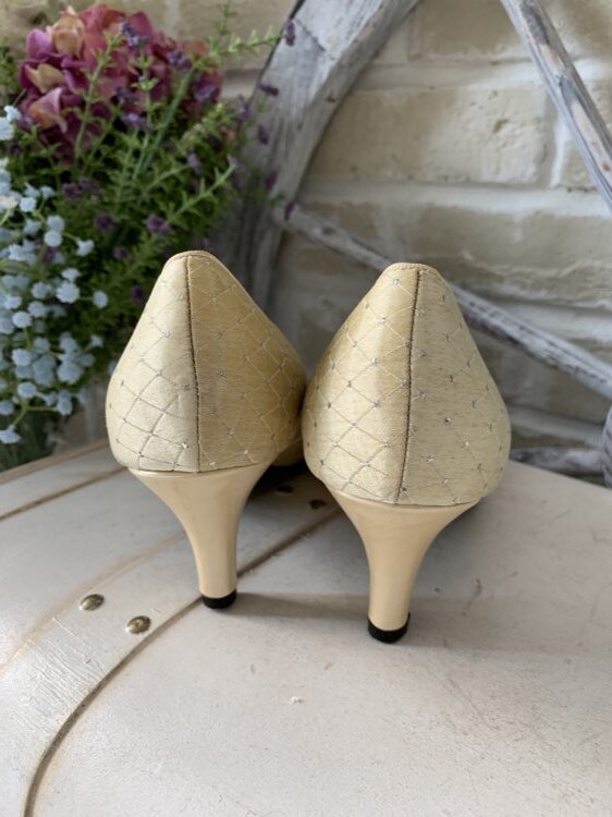 marie claire Forum サテンリボン付き格子柄ゴールドパンプス