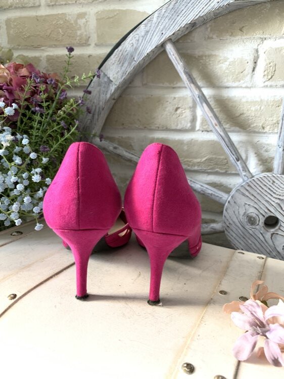 華やかなピンクのピンヒールパンプスです。シースルーデザインが施されていて足先までお洒落な一足です。程よい高さの細めのヒールで歩きやすく、濃いめのピンクカラーが大人の女性らしくエレガントにもゴージャスにも合わせていただけます。同一カラーの小物やドレススタイルにぴったりです。ご家族でのお食事、友人の結婚式など様々なシーンでご活躍頂けます。
