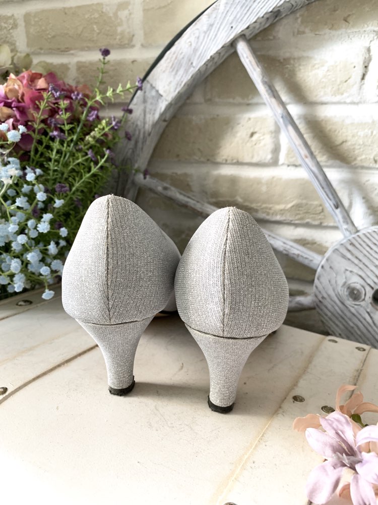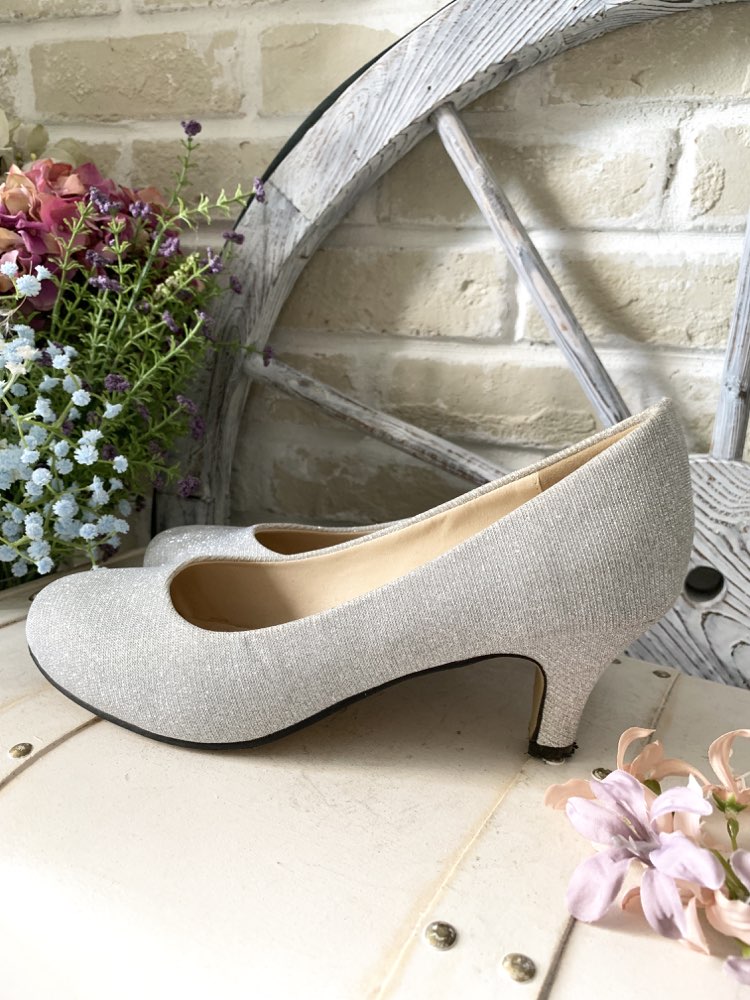 華やかで大人な印象を与えるシルバーのパンプスです。照明に当たるとキラキラと輝くシルバーのラメが全体的にあしらわれているので、ゴージャスでエレガントな雰囲気に。パンツスタイルとも相性抜群です。アクセサリーを同一カラーで合わせると統一感もでます。また、ヒールが低めなのでとても歩きやすくお食事会や結婚式の二次会にぴったりです。