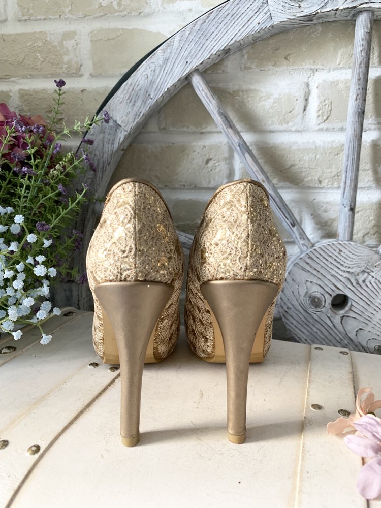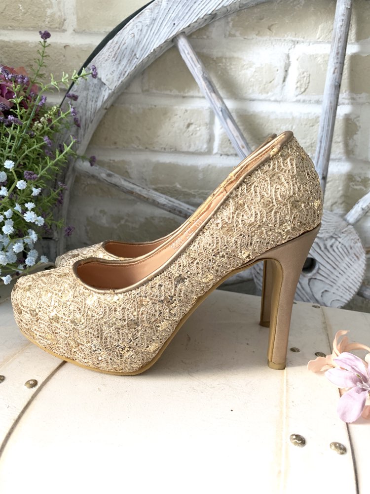 BINI ゴールドラメ総レースパンプス