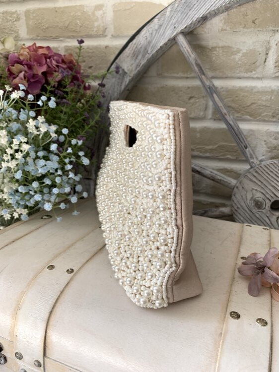 華やかでボリュームあるパールビジュがエレガントなホワイトカラーバッグです。前面に敷き詰めれれたパールビジューが煌びやかな雰囲気を放ち上品な演出を叶えてくれます。シンプルなドレスもゴージャスバッグをONすれば、華やかさとお洒落感をブラッシュアップ。 袱紗が入る大きさで、収納力もあり抜群の機能性。 結婚式や二次会、各種パーティなど華やかな場面にぴったりなバッグです。